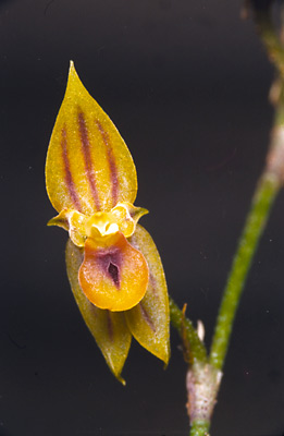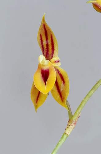 The flower color is yellow to tan with purple stripes