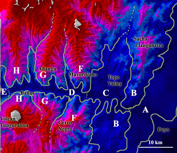 and the El Encanto mountain chains (south of the Pastaza).