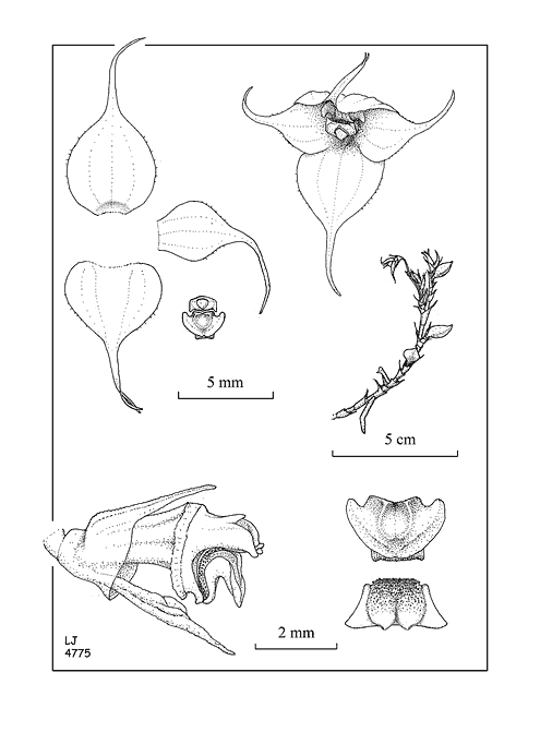 the tail filiform, 4 mm long; lateral sepals connate into an